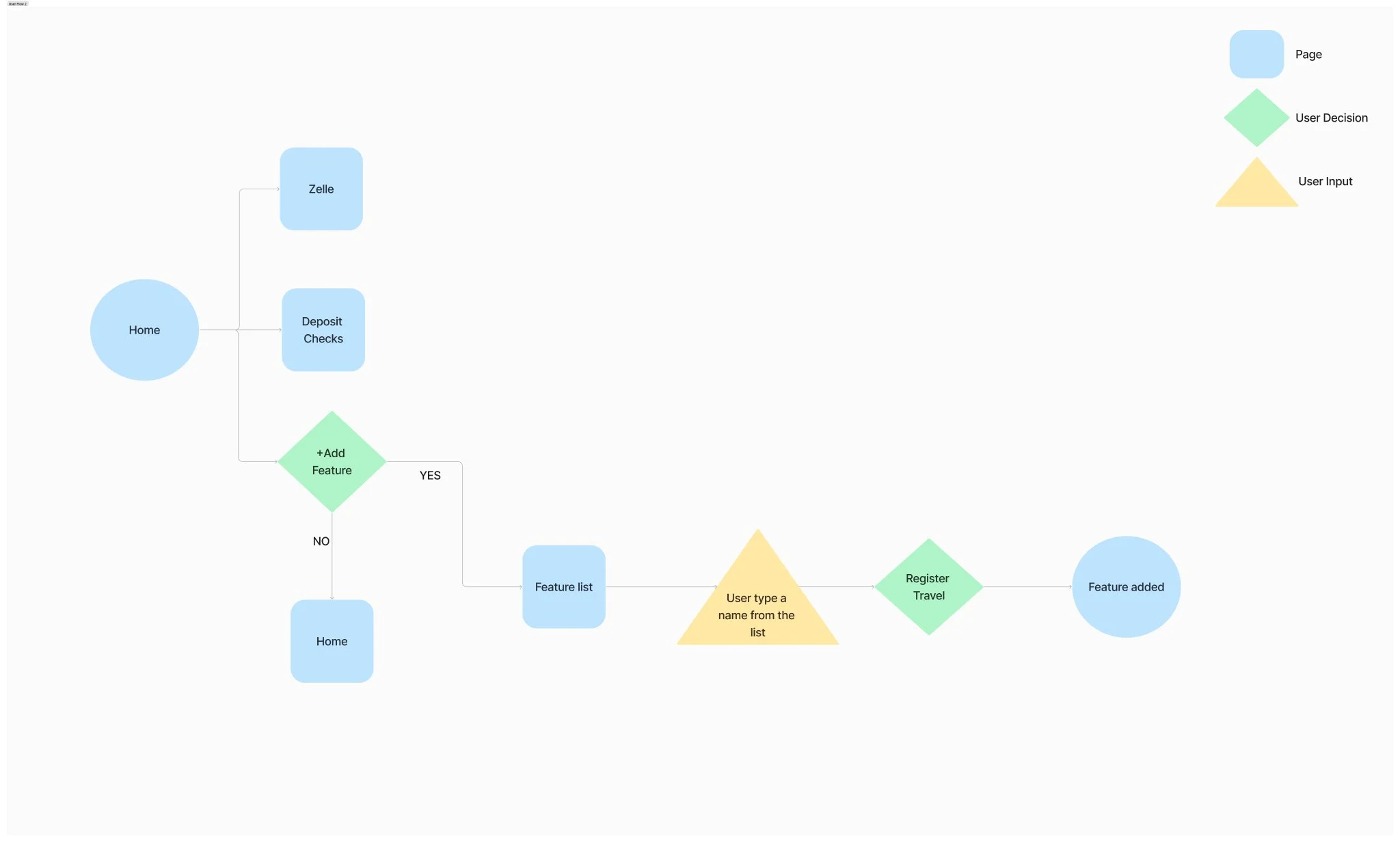 The Sitemap clearly shows that two features are added to the existing application, the first is: Register Travel and the second is Most Used Features. Here it is presented how the user will move until the fulfillment of his goal.