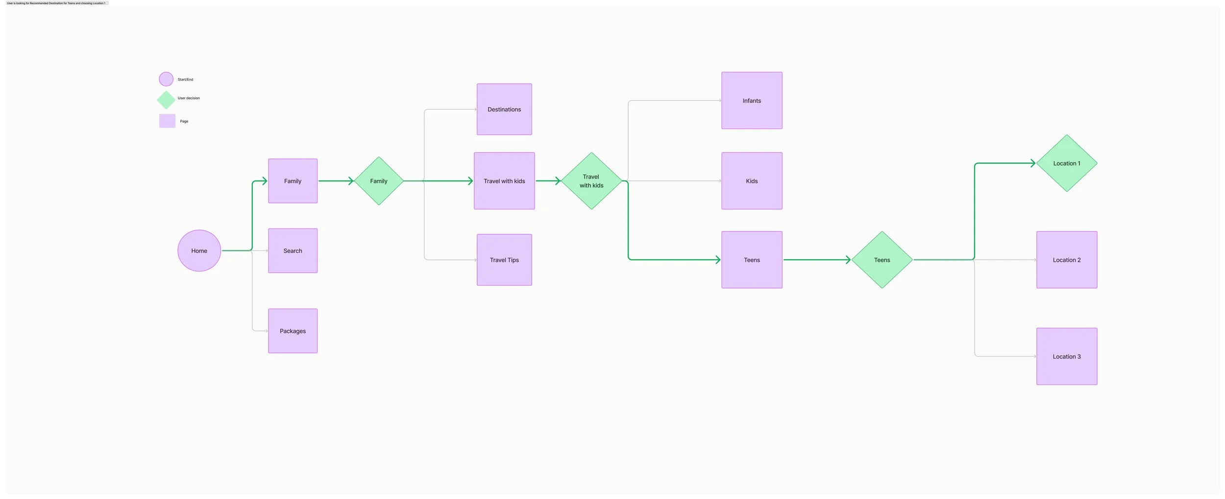 Mapped out the site’s structure to ensure family-friendly destinations and travel tips are easily accessible. Developed user flows for finding family-specific content.
